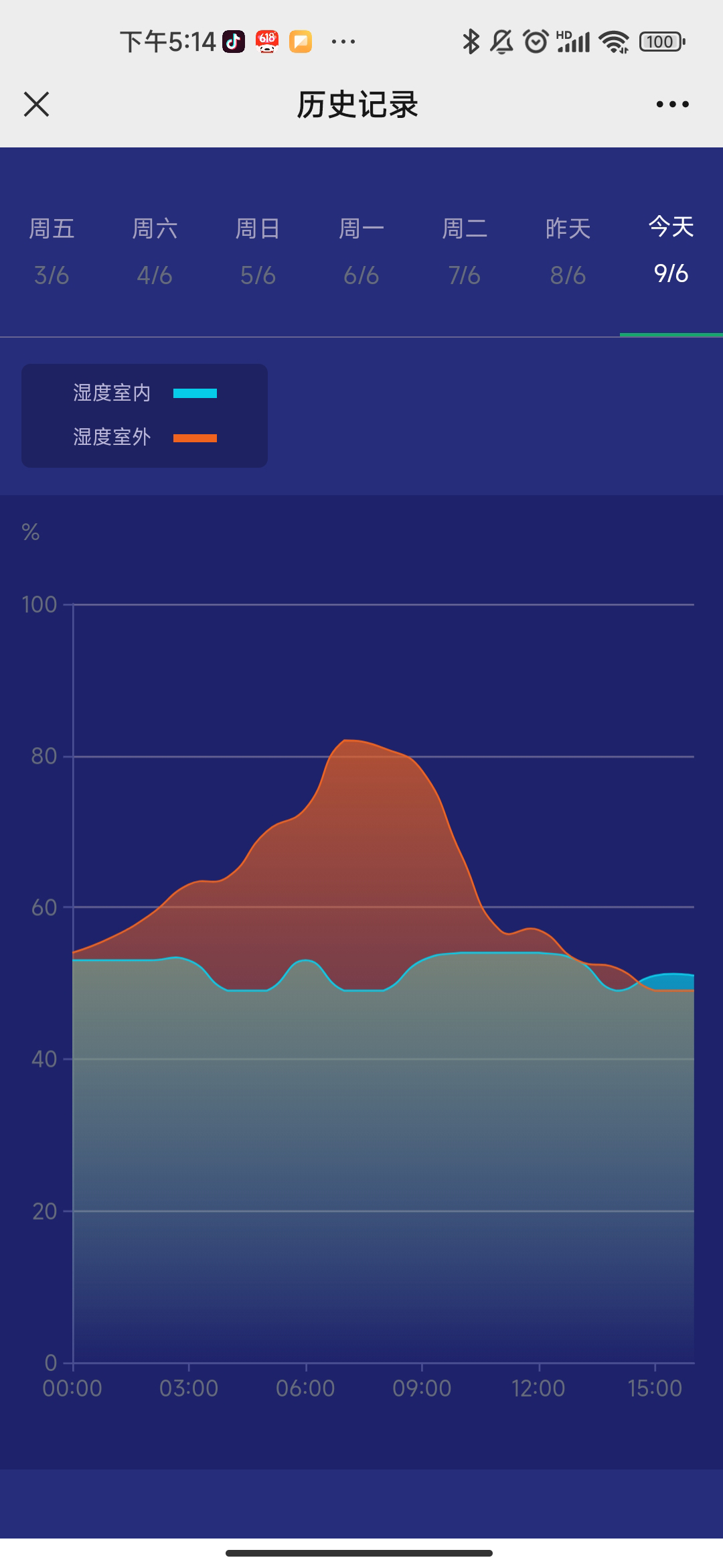2022.06.02~06.08一周闷热天气下,测试湖南省长沙市湘江一号48栋300平米,博洛弗地面辐射系统效果如下: