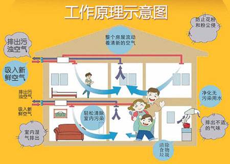 换气功能是新风系统最基础的功能,也是最被大众熟知的功能。安装了新风系统的屋子,可以将新鲜的空气引入并将污浊的空气排出,让室内保持24小时空气新鲜。