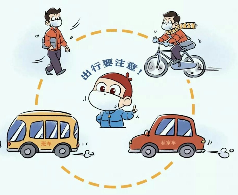 1. 出行尽量避免乘坐公共交通工具,建议步行、骑行或乘坐私家车。